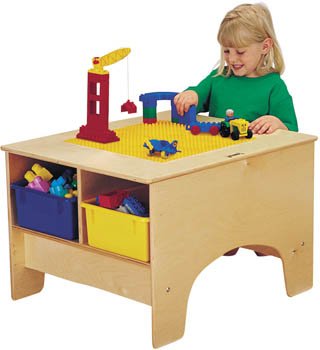 Jonti-Craft KYDZ BUILDING TABLE - DUPLO COMPATIBLE With colored tubs FULLY ASSEMBLED description