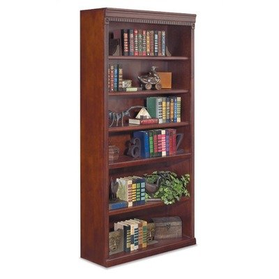 Raise the tone of your home with the classic Huntington Oxford collection. Huntington lends your home an air of contemporary refinement, featuring sturdy hardwood construction in smooth cherry veneers, coated by a rich finish and lightly distressed for that antique luster. Select Huntington pieces feature heirloom-quality details such as old-fashioned hardware and detailed moldings for added high-class appeal. Features: Constructed from hardwood solids and veneers Distressed wheat finish Bookcase has six shelves total Two fixed shelves Four adjustable shelves Back of bookcase is unfinished No assembly required 10 year manufacturer warranty Specifications: Overall dimensions: 72" H x 36" W x 13" D Weight: 115 lbs