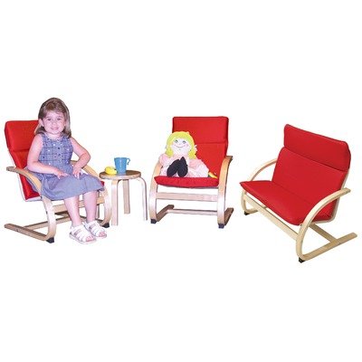 ECR4Kids ELR-0368 This set includes two single seats, one double seat, and one table made of fine hardwood. All chairs feature attractive, removable cushions filled with thick 2" foam and rubber braces on the legs to prevent tipping. The backs are ergonomically shaped to promote good posture and support. They are perfect for the classroom, reading corner, or the home. Features: -Comes with red cushions -Includes 2 chairs, 1 double seat, and 1 table -Made of hardwood -Removable chair cushions with 2" thick foam -Rubber braces on the legs to prevent tipping -Ergonomic back style Specifications: -Chair weight limit: 75 lbs -Double seat weight limit: 100 lbs -Chair dimensions: 25" H x 17" W x 19" D -Double seat dimensions: 25" H x 33" W x 19" D -Table dimensions: 11.75" H x 12" D About Early Childhood Resources This is a company committed to developing and distributing only the highest quality products, all the while, ensuring that these products represent the maximum value in the marketplace. With so many "me-too" products in the market, the companys focus and commitment is to bring you added value in features, functionality, performance and service. Combining their responsibility to the community and their desire to be environmentally conscious, they have a program to reduce (or better yet, re-use) what they would normally dispose of... Early Childhood Resources has eliminated almost all of their cardboard waste by implementing commercial cardboard shredding equipment in its facilities to convert cardboard destined for the landfill into some of the best packing material available.