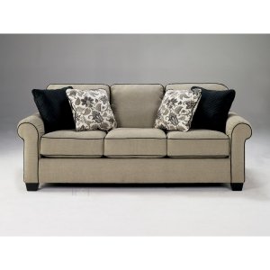 With the dark contrast of the welting details and rich finished showood legs, the light airy fabric and rolled arm contemporary design of the "Caroline-Sepia" upholstery collection creates an atmosphere that awakens the look and feel of any living room décor. This listing is for the sofa only.