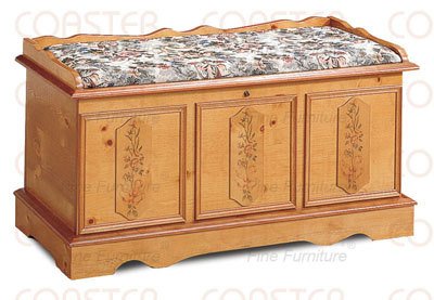 Cedar Wood Chest in Pine Finish with Hand Painted Floral Accents and Cushioned Pad Made by Coaster Home Furnishings |