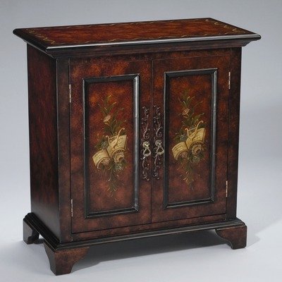 80038 Features: -Cabinet.-Floral painted design. Includes: -Includes two doors. Color/Finish: -Black over brown faux burl finish.