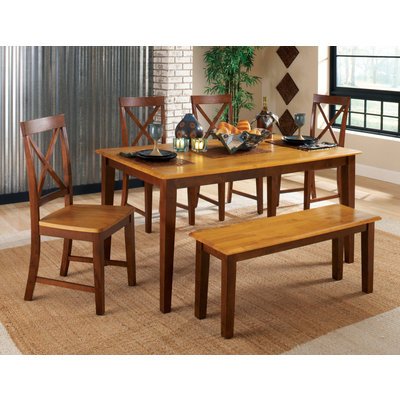 With beautiful cross back chairs, this two toned table has a rich cherry finish. The Kingston collection is a great addition to your dining room. What's included: Dining Table (1), Side Chair (4), Bench (1).