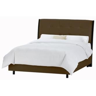 Build your dream bedroom around this stylish design. The look is glamorous with refined contours and clean lines. The headboard features tufted details that add texture and personality. Headboard, side rails and low front rail are upholstered in a durable, brown vinyl fabric. The frame is solid wood, and it's padded with a polyester filling. Each of these beautiful beds is carefully crafted to order. May be used with or without a box spring. Mattress, pillows and bedding not included. Other colors and sizes are available. Full size bed. Solid wood frame. Vinyl upholstery. Polyester filling. Spot clean only. Assembly required. 78" long. 59" wide. Headboard is 51" high.