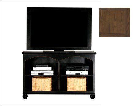 American oak hardwood and traditional styling make the Classic Oak collection one for the ages. Crown moulding, antique brass hardware and solid oak frames and raised panel doors combine longevity and classic style in this enduring and popular collection. Color: Chocolate Mousse. 1 Fixed Wood Shelf. Bun Foot Base. Dimemsions: 34-3/4 H x 56-1/4 W x 17 D.