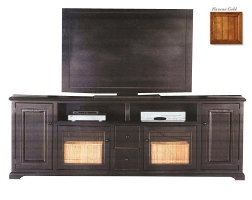 The Coastal collection fits todays casual lifestyle. Recessed doors, bead board panels and solid wood mouldings provide a clean, contemporary style that is complemented by a choice of painted or rich stained finishes. Color: Havana Gold. 2 DVD Drawers. 2 Glass Panel Doors. 2 Raised Panel Doors. 2 Fixed Wood Shelves. Dimensions: 32 H x 89 W x 17 D.