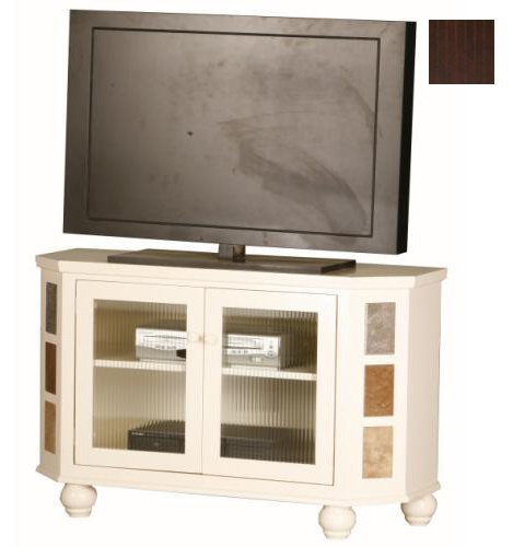 The Flagstaff collection fits todays comfort lifestyle. Recessed doors, inset slate tile panels and solid wood mouldings provide a clean style that is complemented by a choice of painted or rich stained finishes. Color: European Coffee. 2 Glass Panel Doors. 1 Fixed Wood Shelf. Tile Accents. Bun Foot Base. Dimensions: 27-1/2 H x 45-3/4 W x 17 D.