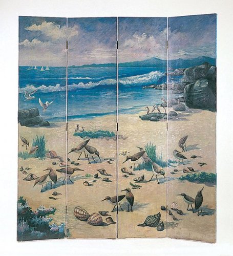 This beach has gone to the birds! This lovely 4 paneled room divider is colorful and inviting. The soothing beach scene comes alive and makes you feel relaxed and pleasant. Made of Indonesian hardwood and clay this painted privacy screen is great for disguising items or as added privacy for your overnight guests. Measures 72"H x 64"W. .