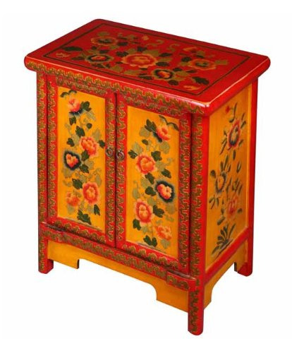EXP Decor Handmade 24" Tibetan Nightstand with Floral Motif (Red, Yellow) (24"H x 19"W x 12"D) Review