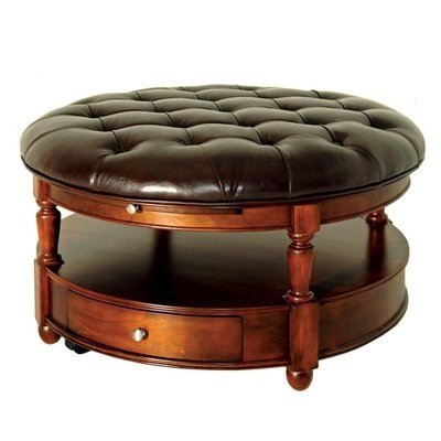 Brewster Cocktail Table by Steve Silver Styled in a cherry finish our tables from the Brewster collection are versatile and loaded with style. The Cocktail Table is rounded in shape, on round feet. The bottom offers pull out drawers with slide out table trays and is open in the center with leather like tufted top. Decorate your living area with the Brewster collection. Features: Contemporary Style Leather Tufted Top Open Center Storage Drawers Slide Out Trays Casters Included Tongue and Groove Joints Corner Blocked Construction Multi-Step Cherry Finish Assembly Required Ships Via Freight Dimensions: 40" W x 40" D x 23" H Weight: 116 Lbs.
