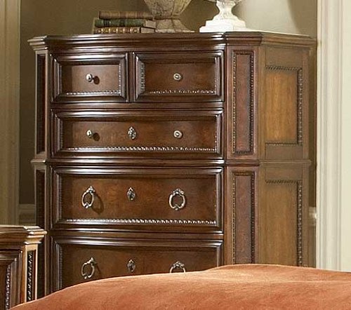 European elegance at its best. Flowing lines, detailed carvings, beautiful veneer treatments and grand scale are some of the many design elements of our Prenzo Collection. The collection is inspired by the grand estates of the Tuscan region of Italy where a casual yet elegant lifestyle is best experienced. Carving is softened with a warm brown finish on beautiful cherry veneers and further accented with burnishing and light distressing. The Prenzo Collection will add an air of magnificence to your home while still allowing for today's more casually refined lifestyle. Dimensions: