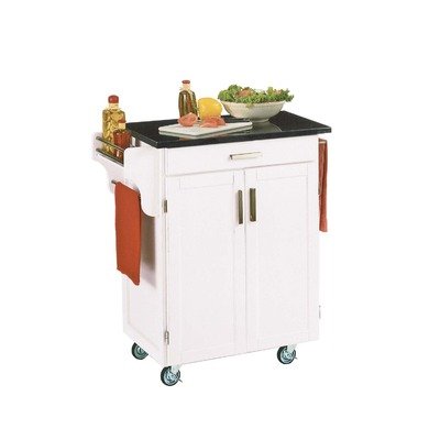 9001-0025 Features: -Kitchen cart.-Material: Wood.-With gray and salmon granite top.-Utility drawer on metal drawer slides.-Two cabinet doors open to storage with adjustable shelf inside.-Rack for handy spice and towel bar.-Heavy duty locking rubber casters for easy mobility and safety. Color/Finish: -Finish: White. Assembly Instructions: -Some assembly required. Collection: -Create-a-Cart collection.