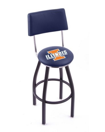 This contemporary Illinois stool has a has a single-ring black finish base and a cushioned back to achieve maximum comfort and support. Holland Bar Stool uses a detailed screen print process that applies specially formulated epoxy-vinyl ink in numerous stages to produce a sharp crisp clear image of your teams emblem. You cant find a better logo stool on the market. The structure is powder-coated to ensure a rich deep finish that will last ages. If youre going to finish your bar or game room do it right with a Holland Bar Stool that is made in the USA. Dimensions 45 H x 18 W x 18 D. Seat Height 30. Also available as a counter stool. Dimensions 40 H x 18 W x 18 D. Seat Height 25.