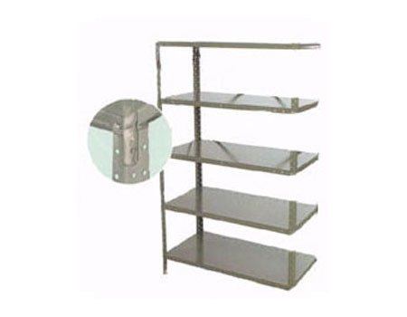 5 Shelf (heavy duty) open clip style steel shelving offers the versatility of interchangeable components and gives you the option of assembling shelves with nuts and bolts (instead of clips). Add-on units are used to create additional shelving units by attaching to existing shelving sections. - - Features Include: - All units come 7'1" tall standard. - All units are priced using 18 gauge shelves.
